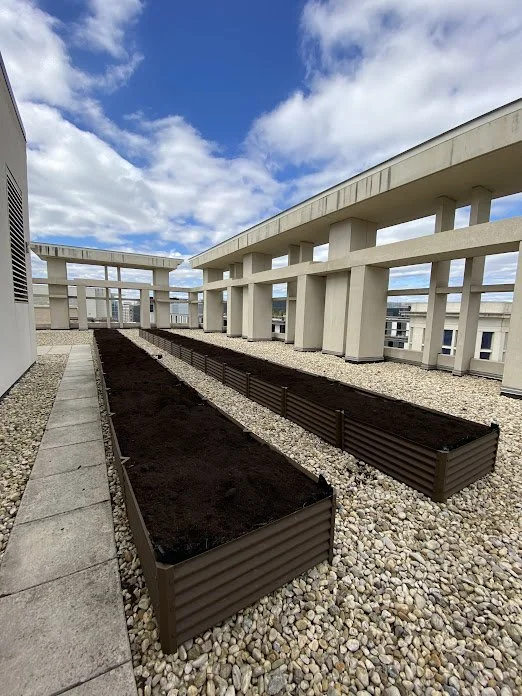 We are excited for the inaugural garden season! Since the installation in early April, our crew has been busy planting a huge variety of perennial and annual herbs, flowers, and vegetables. Some highlights include: lavender, rosemary, chives, sunflowers, marigolds, kale, collards, and swiss chard. In May we will continue the plantings with our summer crops, such as tomatoes, peppers, and eggplant.